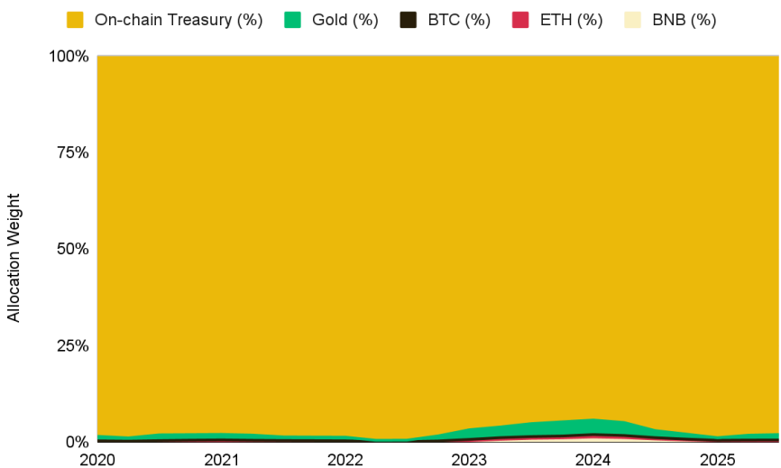 - 크립토 베타: 총 1–16% 범위에서 BTC·ETH·BNB 간 회전, 동시 과대배분은 드묾