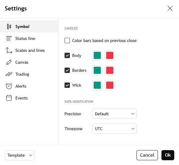 - [Symbol] : 캔들 차트의 각 요소 색상을 내 마음대로 지정합니다.
