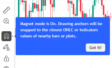 - 자석 모드(Magnet)를 켜면, 선이 근처 OHLC 점에 스냅되어 정밀도가 높아집니다.