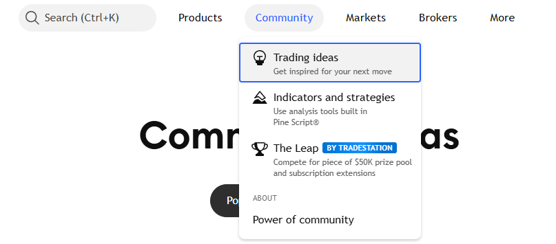 웹사이트의 Ideas·Streams 페이지를 통해 팁을 얻거나 피드백을 받을 수 있습니다. Ideas 페이지에 들어가면 다른 사용자가 올린 차트, 동영상, 해설을 볼 수 있고, 토론방·채팅에도 참여할 수 있어요.