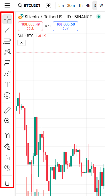 - 차트 영역에서 바로 쓸 수 있는 드로잉 도구 모음입니다.