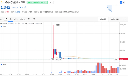 실제 사례로 2024년 발생한 무브먼트(Movement) 상장빔 사태는, 유동성 부족이 어떻게 극단적인 가격 왜곡과 투자자 피해로 이어지는지를 단적으로 보여줍니다. 당시 무브먼트는 유통·거래 가능한 물량은 매우 적어 얕은 오더북 위에서 호가가 형성되고 있었고, 상장빔을 기다리는 매수 수요는 충분히 쌓여 있는 반면, 이를 받아낼 초기 유통량과 유동성이 심각하게 부족한 상태였습니다. 결과적으로 아래 차트에서 보듯, MOVE 가격은 기형적으로 폭등하는 현상이 발생했습니다.