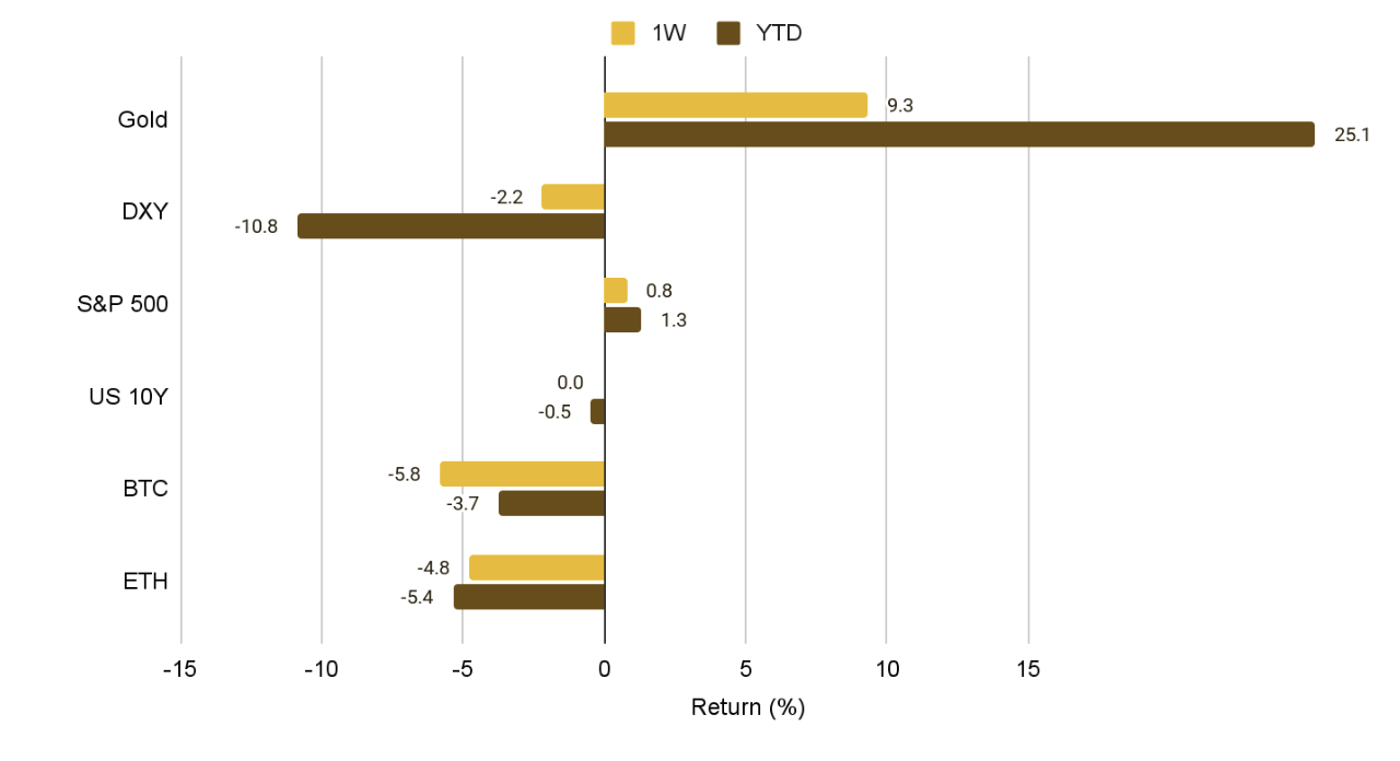 트럼프 행정부와 재무부 간의 엇갈린 환율 정책 신호가 시장 변동성을 확대하며 달러 약세를 주도했습니다. 이 과정에서 금이 유효한 헷지 수단으로 부상한 반면, 비트코인은 매크로 변수에 민감한 위험 자산의 성격을 보이며 자산 간 디커플링 현상이 관측되었습니다.