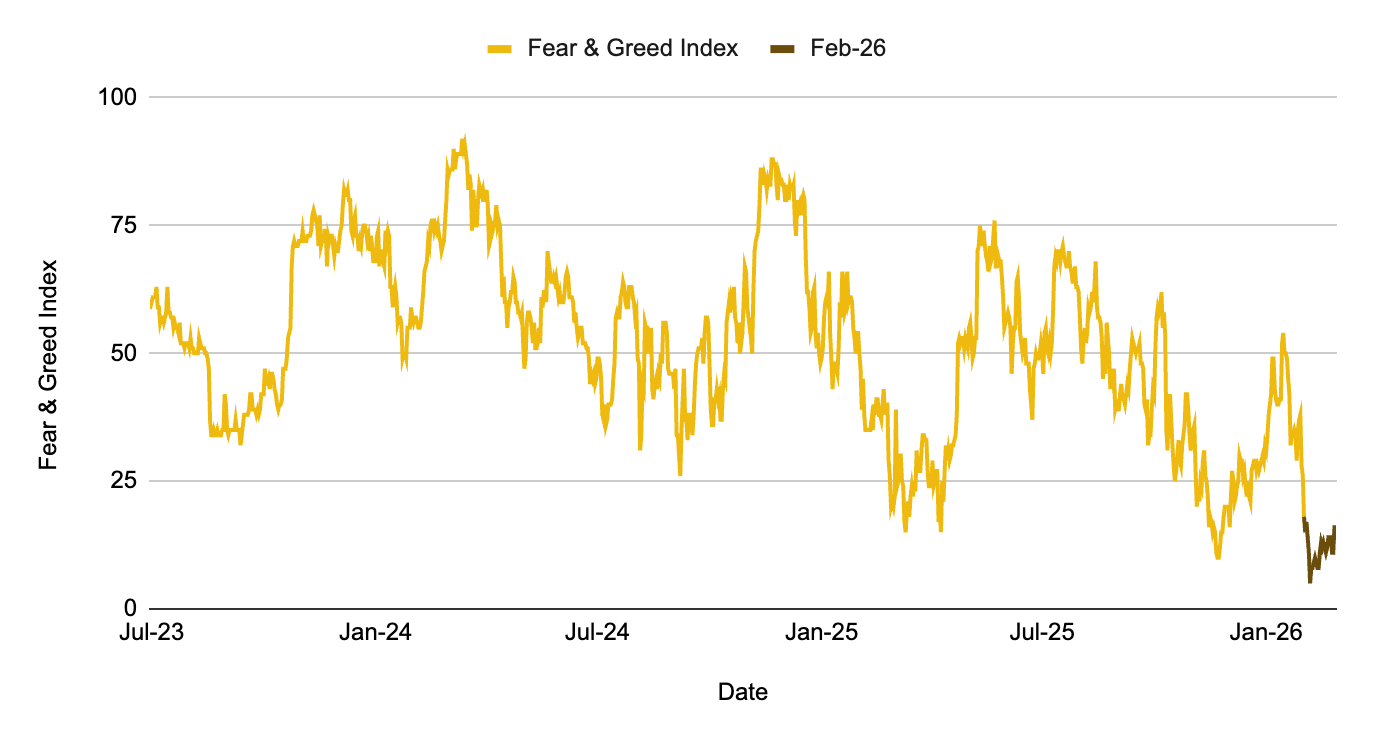 비트코인은 2월 내내 ‘극단적 공포’ 심리 속에서 거래됐습니다. 이는 시장 참여자들의 자신감이 크게 훼손돼 있음을 보여줍니다. 개인 투자자 참여는 줄고, 소셜 미디어의 열기도 식었으며, 레버리지 포지션도 대거 정리됐습니다.