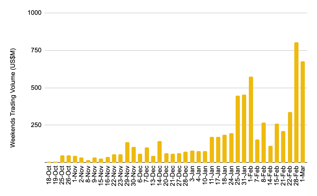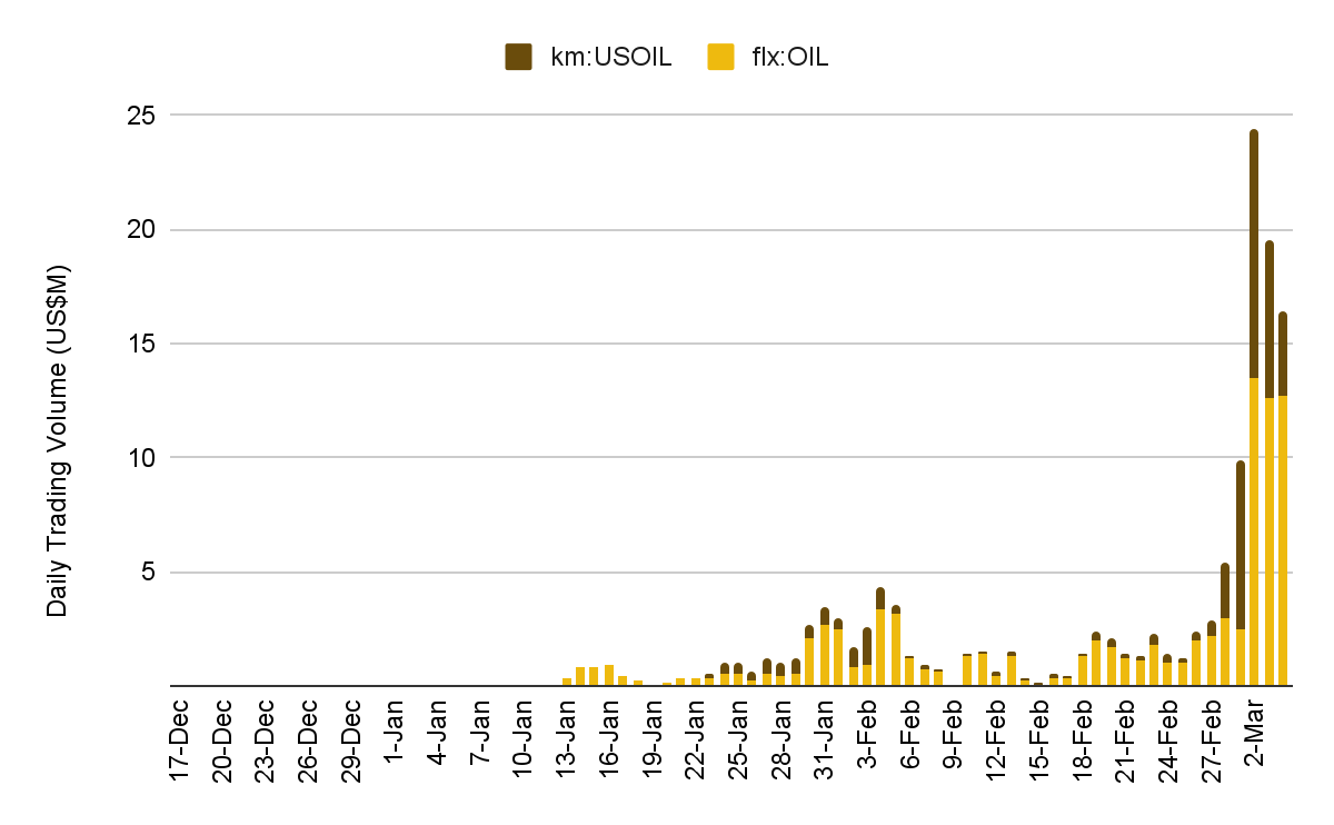 특히 이번 주 주목할 부분은 전통 금융시장 참여자들의 행동 변화였습니다. 지난 주말 중동 리스크가 부각됐을 때, Bloomberg는 Hyperliquid의 탈중앙화 무기한 선물 시장을 실시간 원유 가격 참고 지표로 인용했습니다. 이것은 상징성이 큽니다. 전통 금융시장이 닫혀 있는 시간에, 크립토 기반 거래 인프라가 실제 가격 발견 기능을 수행한 것입니다.