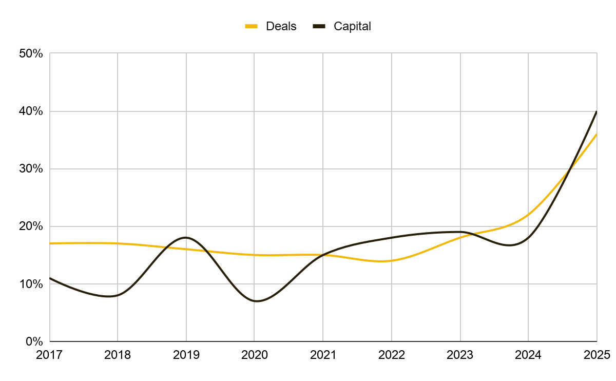 이 점은 크립토에도 중요합니다. 실리콘밸리은행은 2025년에 크립토 기업에 투자된 VC 자금 1달러당 40센트가 동시에 AI 제품을 개발하는 기업으로 들어갔다고 언급했는데, 이는 전년의 18센트에서 크게 상승한 수치입니다. 다시 말해 AI는 크립토와 병렬적인 내러티브로 유입되는 것이 아니라, 점점 더 크립토의 제품 및 인프라 스택 자체의 일부로 편입되고 있다는 뜻입니다.