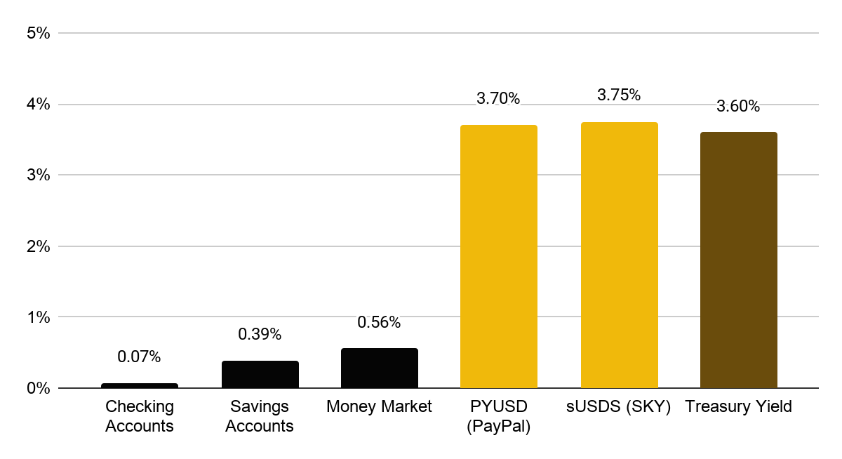 스테이블코인은 이 구조를 교란합니다. 시스템이 벌어들이는 수익과 최종 사용자가 받는 수익 사이의 격차를 줄이는 경쟁 구조를 도입하기 때문입니다. 수익이 보다 직접적으로 사용자에게 전달되는 모델에서는 이용자가 기초 금리에 더 가까운 수익을 얻을 수 있어, 전통적 예금의 경제적 장점이 약화됩니다.