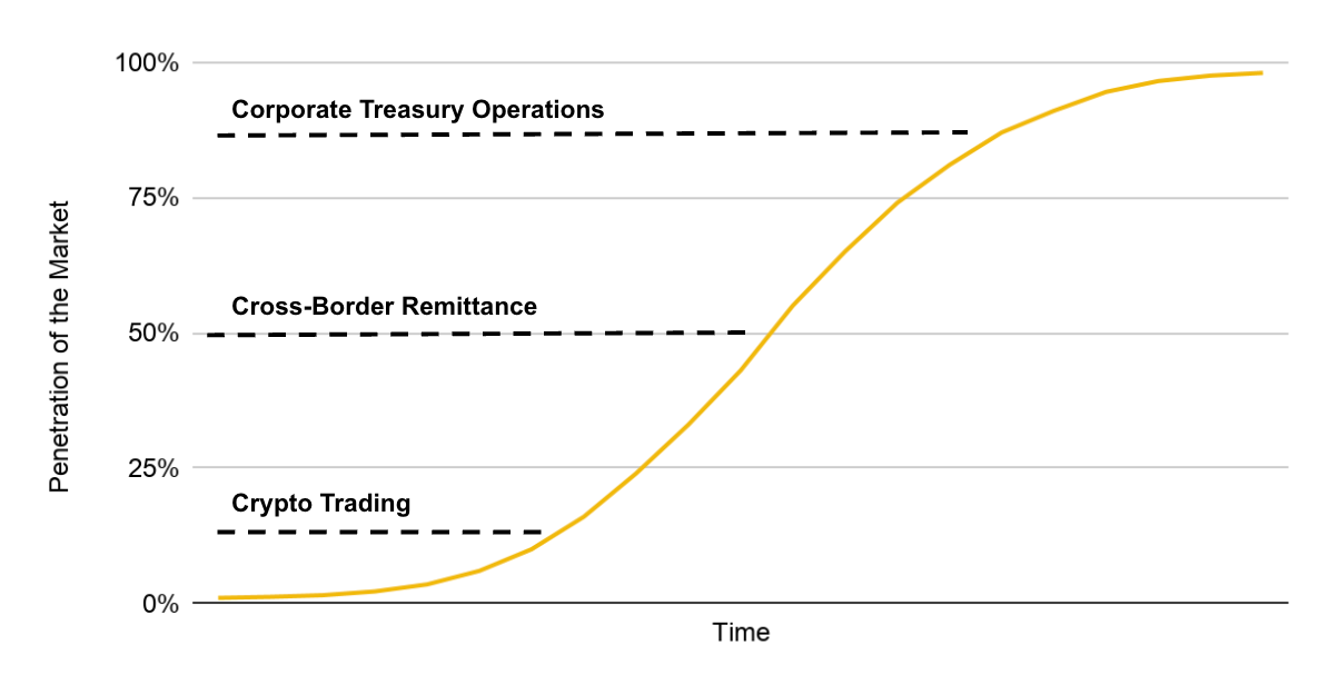 약 1,840억 달러 규모로 최대 스테이블코인인 Tether는 사용자에게 수익률을 전달하지 않습니다. 그 성장 동력은 전적으로 효용이었습니다. 거래 페어, 정산, 크로스보더 송금이 그것입니다. 이는 수익률이 스테이블코인 대규모 채택의 필수 조건이 아님을 시사합니다. 실제로 많은 주요 스테이블코인 발행사는 이자를 지급하지 않지만, 국경 간 달러 이동과 거래 정산을 단순화한다는 이유만으로 채택이 급증했습니다.