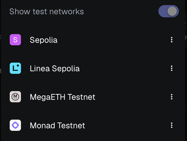 세폴리아로 전환하려면 메타마스크 확장 프로그램을 열고 화면 상단의 네트워크 선택기로 이동하여 세폴리아를 선택합니다. (먼저 설정에서 테스트 네트워크 표시를 활성화해야 할 수 있습니다.)