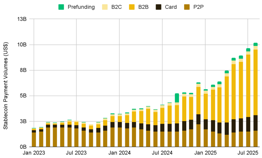 역사적으로 스테이블코인의 주요 효용은 리테일 크립토 트레이딩과 투기 수요를 지원하는 데 집중되어 왔습니다. 그러나 현재 진행 중인, 기업 주도의 글로벌 대규모 도입 단계는 스테이블코인을 틈새 트레이딩 도구에서 기업과 소비자를 위한 기반 금융 인프라로 성숙시키는 방향으로 전환시키고 있습니다.