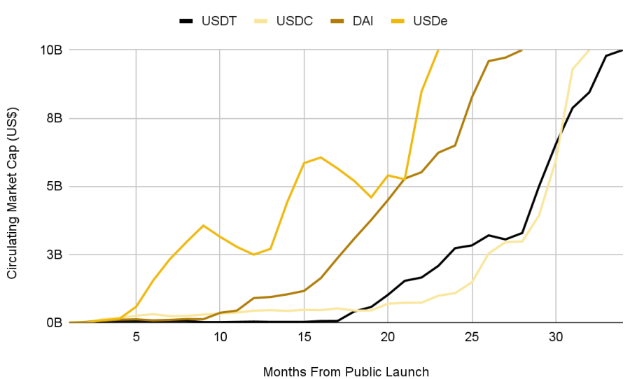 한편, 크립토 업계 안팎의 다른 주요 브랜드들도 스테이블코인의 성장과 수익 잠재력에 주목하고 있으며, 기존 테더–서클 듀오폴리의 점유율을 잠식하기 시작했습니다.